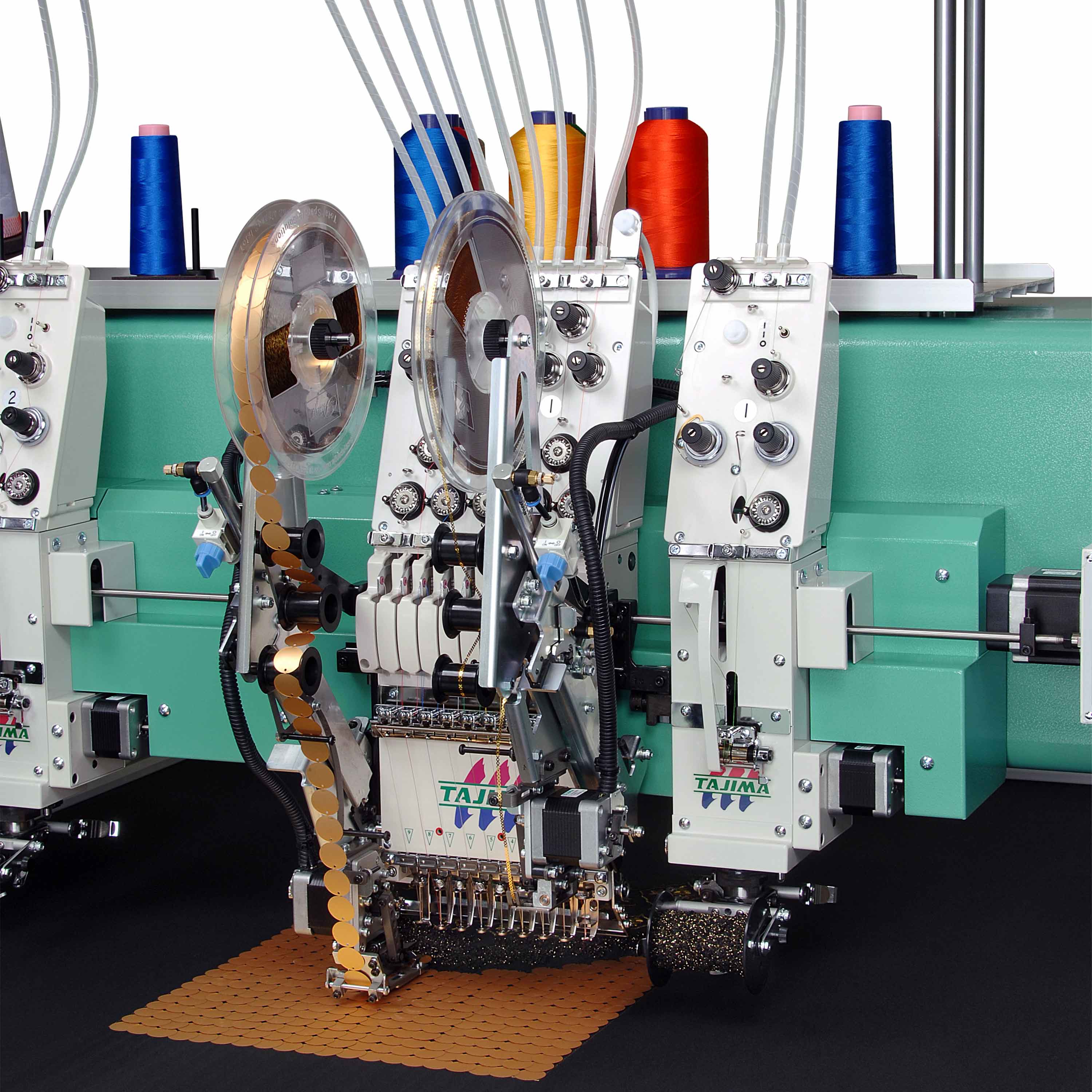 Il dispositivo Paillette Sequin IV Tajima permette applicare paillette di varie forme e con diametri compresi tra 2 e 22 mm, offrendo flessibilità nella realizzazione di design creativi.