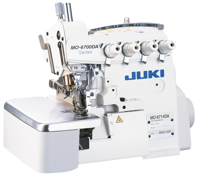 Macchina tagliacuce semi-dry, due aghi, 4 fili, tipo di punto 514, distanza aghi 2,0 mm, altezza sopraggitto 4,0 mm, velocità di cucitura fino a 7000 p/min., trasporto inferiore differenziale, corsa alta del crochet superiore.